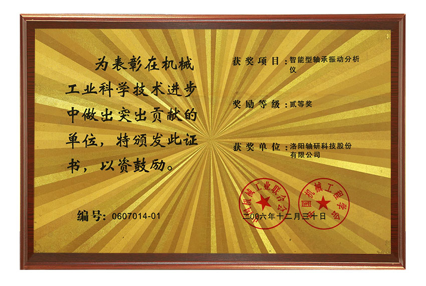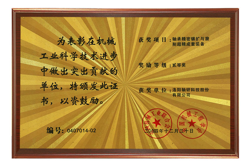 在機(jī)械工業(yè)科學(xué)技術(shù)進(jìn)步中做出突出貢獻(xiàn)的單位二等獎