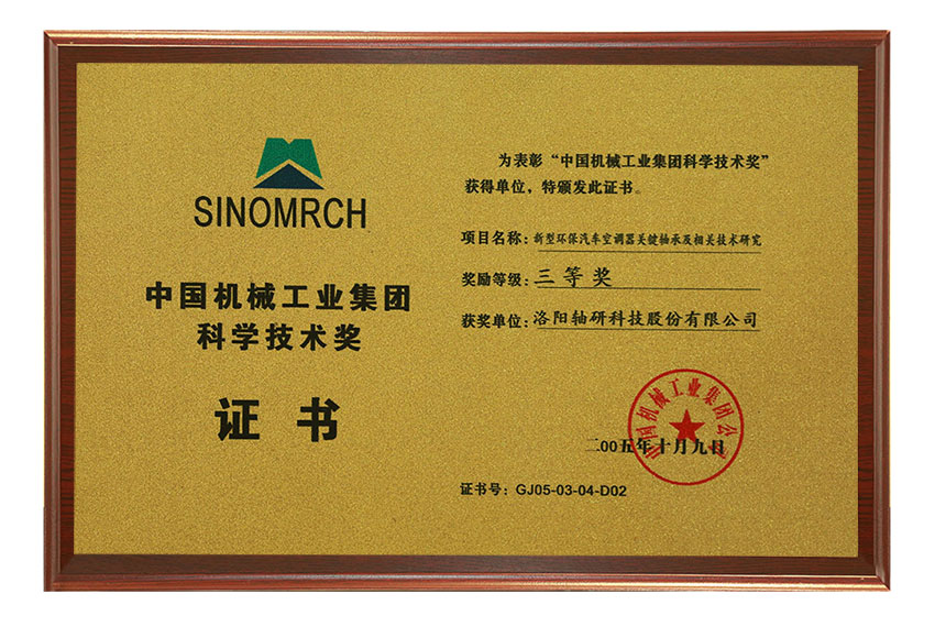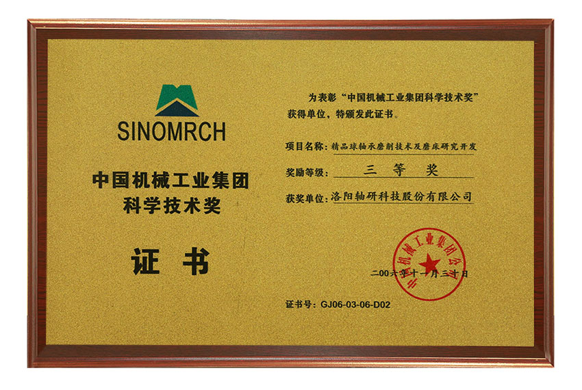 中國機(jī)械工業(yè)集團(tuán)科學(xué)技術(shù)獎三等獎