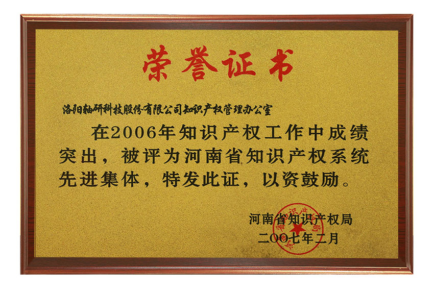 在2006年知識產(chǎn)權(quán)工作中成績突出,被評為河南省知識產(chǎn)權(quán)系統(tǒng)先進(jìn)集體