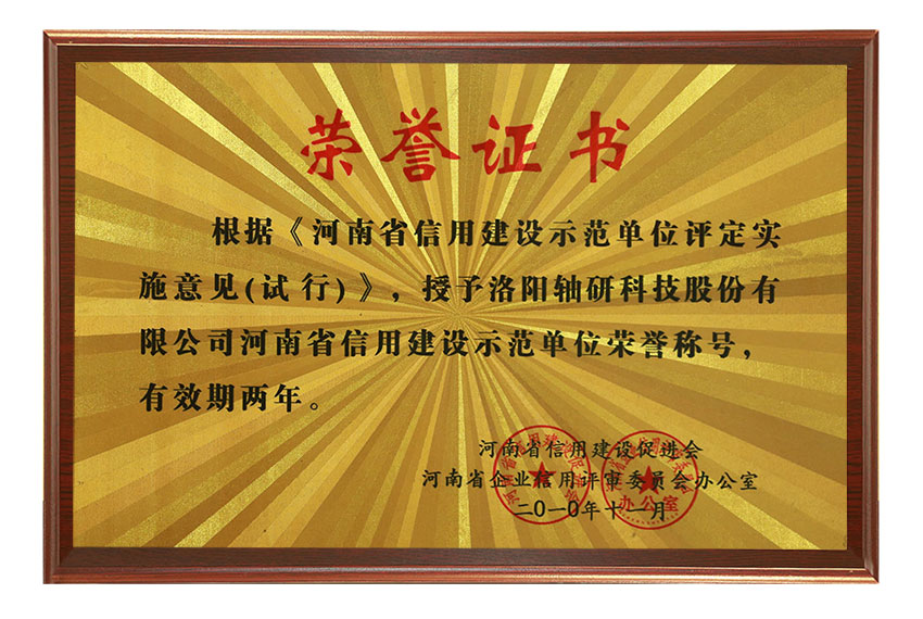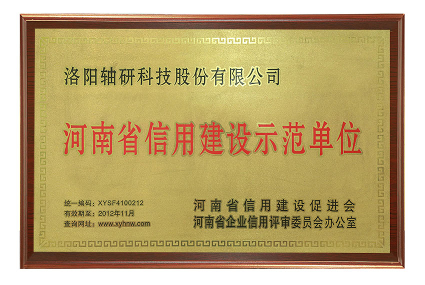 河南省信用建設(shè)示范單位榮譽(yù)稱號