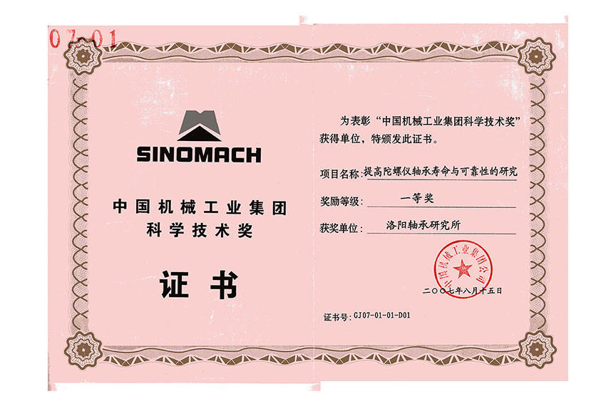 中國機(jī)械工業(yè)集團(tuán)科學(xué)技術(shù)獎一等獎