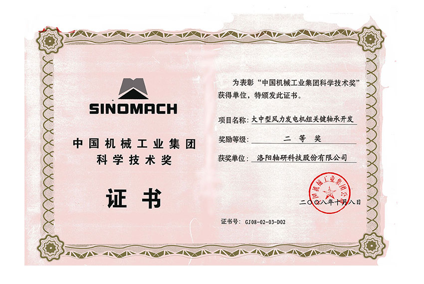 中國機(jī)械工業(yè)集團(tuán)科學(xué)技術(shù)獎二等獎