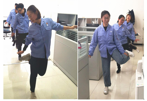 在五四青年節(jié)來臨之際,精密部件事業(yè)部一支部組織員工開展“快樂工作,健康生活”工間操活動。每天在工作之余進行15分鐘工間操鍛煉,工間操由最近火遍全網的毽子操以及上半身拉伸組成,毽子操主要圍繞膝、髖、踝關節(jié)周圍的肌肉、韌帶進行鍛煉,有利于提高軟組織的活動功能,改善下肢循環(huán);上半身運動以拉伸為主,支部為員工發(fā)放了拉力器,以便員工針對頸肩及腰背進行拉伸,通過簡單的一組動作可有效改善因伏案久坐引起的頸肩疼痛及圓肩駝背問題。