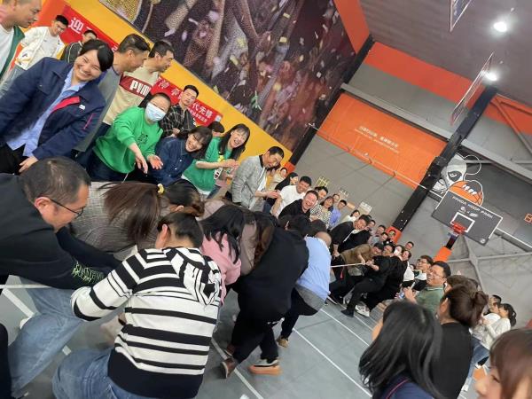 本次趣味運(yùn)動(dòng)會(huì)共設(shè)置了團(tuán)隊(duì)跳繩接力、團(tuán)隊(duì)跳大繩、接力賽、拔河、眾志成城等趣味比賽項(xiàng)目,事業(yè)部總經(jīng)理?xiàng)罨⒓案笨偨?jīng)理孫東帶領(lǐng)職工分為四個(gè)隊(duì)伍進(jìn)行比賽。