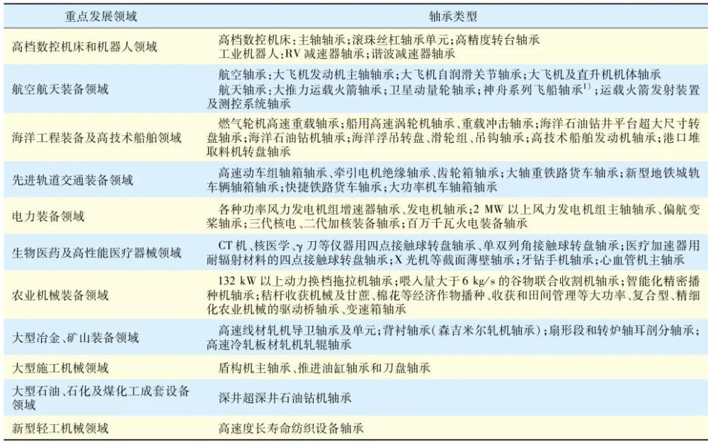 表1 “十四五”期間我國(guó)重大技術(shù)裝備配套軸承和其他高端軸承的開發(fā)任務(wù)